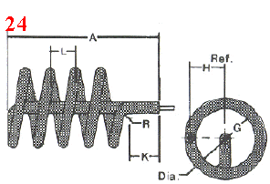 SL = 2K + 2A + 2B – 2.58 R3 + 3.14 R1 X + 3.14 R2 (X – 1) + 2L (X – 1) -H + 1.14 x Dia. – 5.85 Dia.